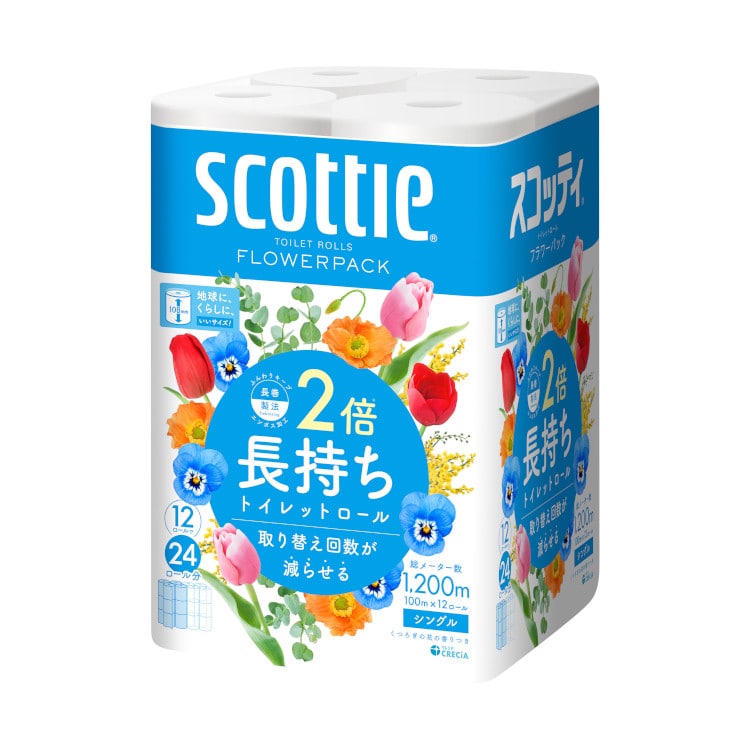 ★[4個セット]スコッティ フラワーパック 2倍巻き(12ロールで24ロール分) トイレット 100mシングル