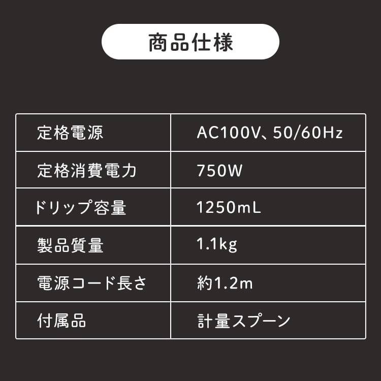 ![[マイル5倍!12/7迄][公式]コーヒーメーカー 1250ml ドリップ式 大容量 PCMK-1250 ブラック アイリスオーヤマ](/img/0119/goods/3/0119-7181738.jpg)