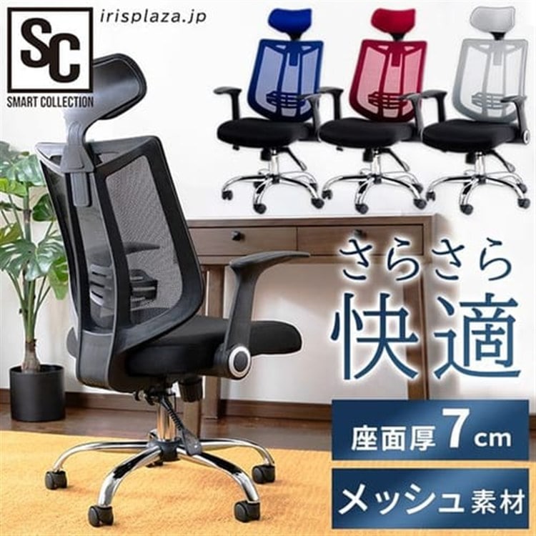 ヘッドレストとリクライニング調整ができるメッシュバックオフィスチェアです。