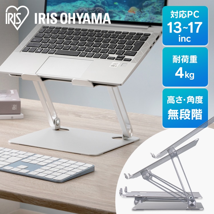 高さ・角度が無段階で調節可能なPCスタンドです。
