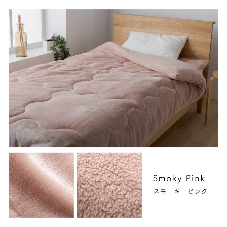 フランネルとシープ調ボアで中綿を挟んだ3層構造です。