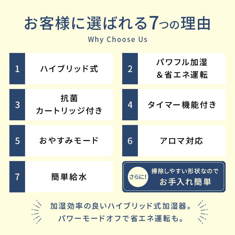 ●PTCヒーターで加熱し超音波でミストにするハイブリッド式加湿器。