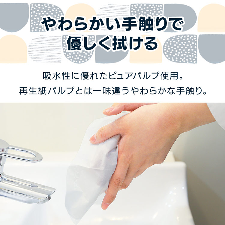 ピュアパルプ100%で、吸水性に優れたペーパータオルです。