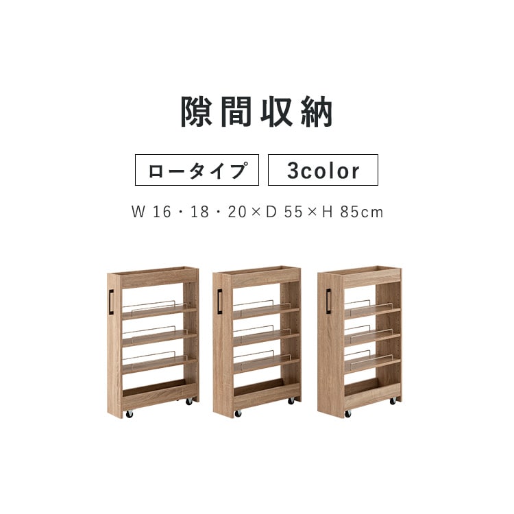 隙間収納ロータイプ FRM-004-IR 16cm_ホワイト