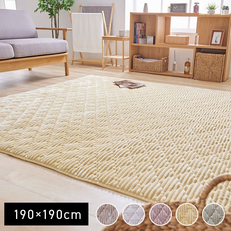 フランネルラグ 190×190 4層構造 抗菌防臭 洗濯可 スモーキーラベンダー