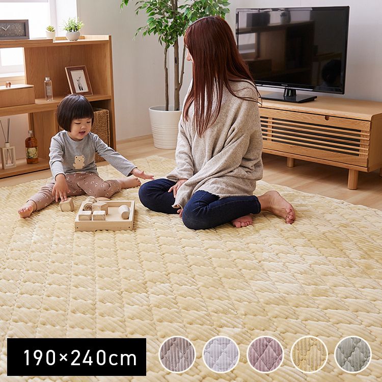フランネルラグ 190×240 4層構造 抗菌防臭 洗濯可 グレージュ