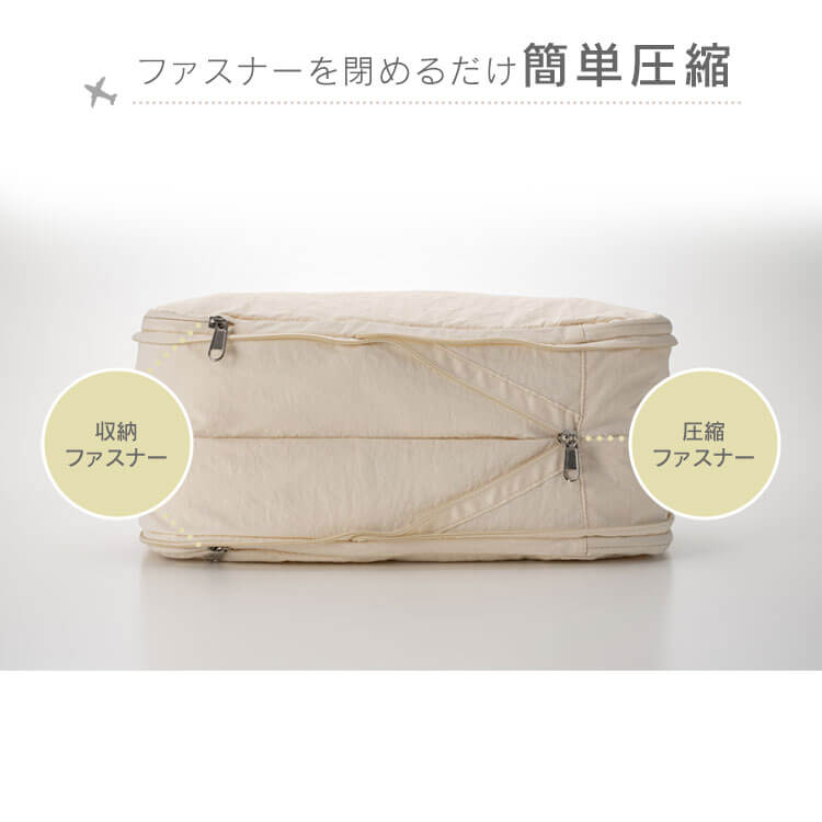 ファスナーだけで衣類などをコンパクトに圧縮できます。