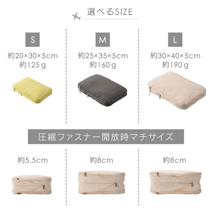 ファスナーだけで衣類などをコンパクトに圧縮できます。