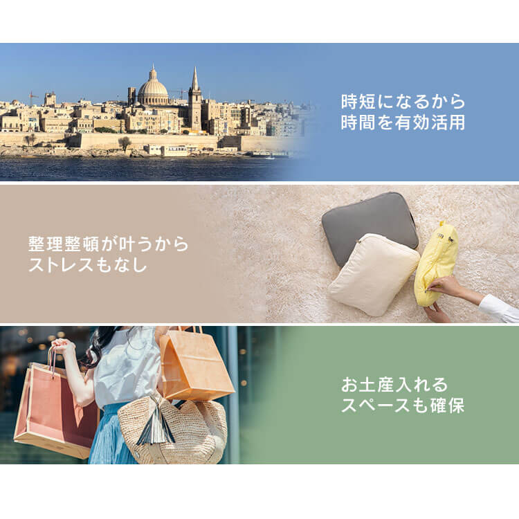 旅行や出張時に衣類をコンパクトに収納できるポーチです。