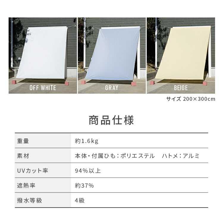日よけ、目隠しにも使える3×3mの撥水シェードです。