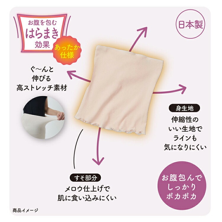 よ~く伸びる高ストレッチ性の腹巻で着脱やつけている間もラクラクあったかい。