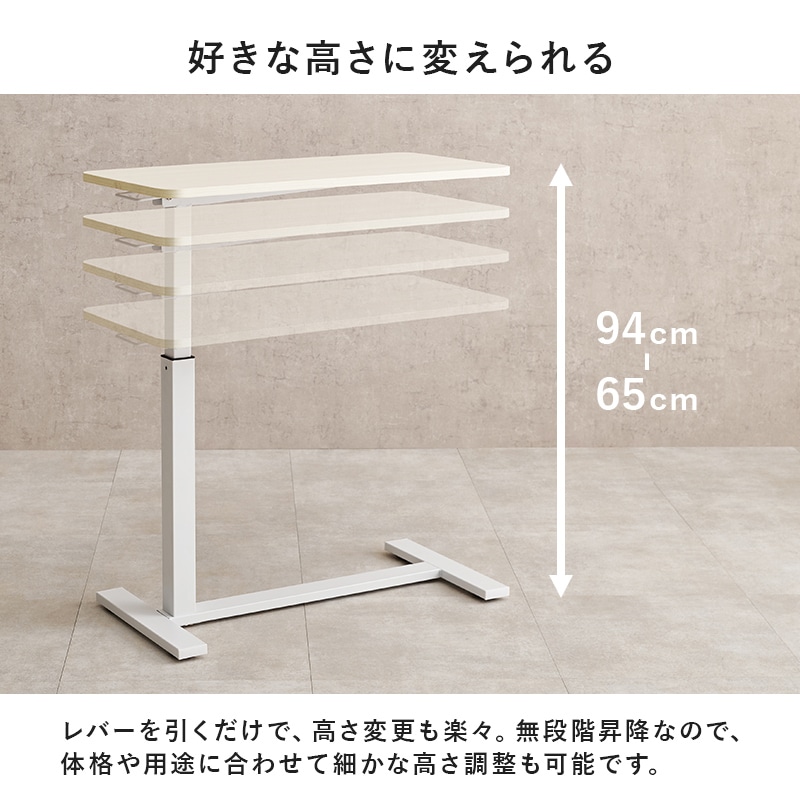 シーンに合わせて高さが変えられる無段階の昇降機能付きサイドテーブル。
