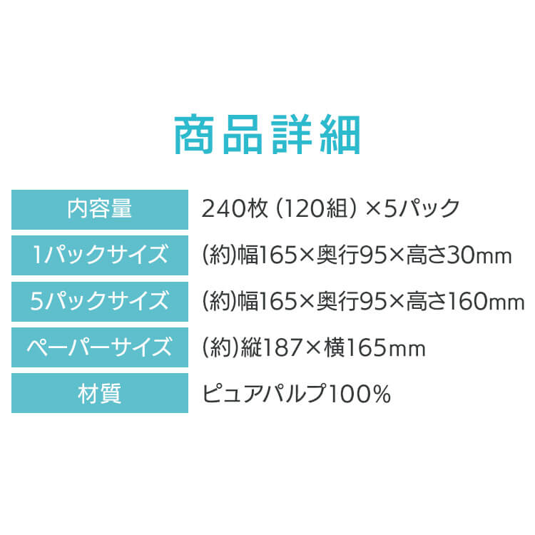 ●内容量:240枚(120組)×5パック×6セット