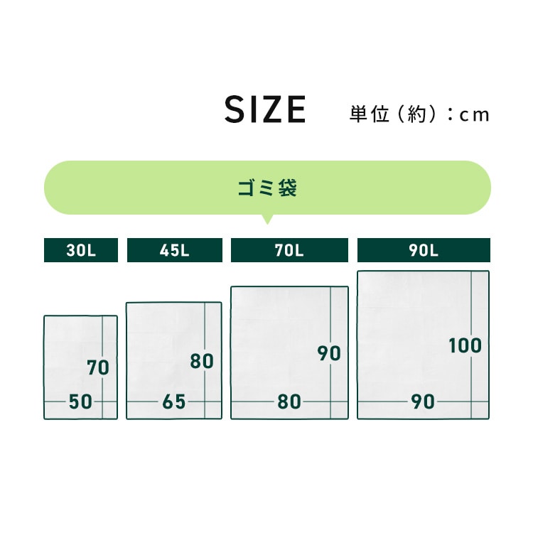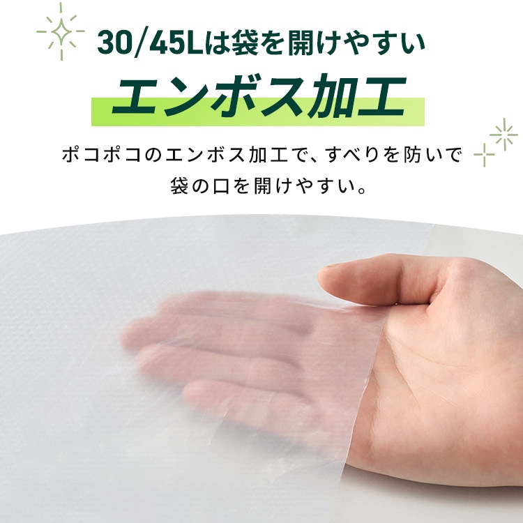 HDPE(高密度ポリエチレン)製で、カサカサした手触りのゴミ袋です。