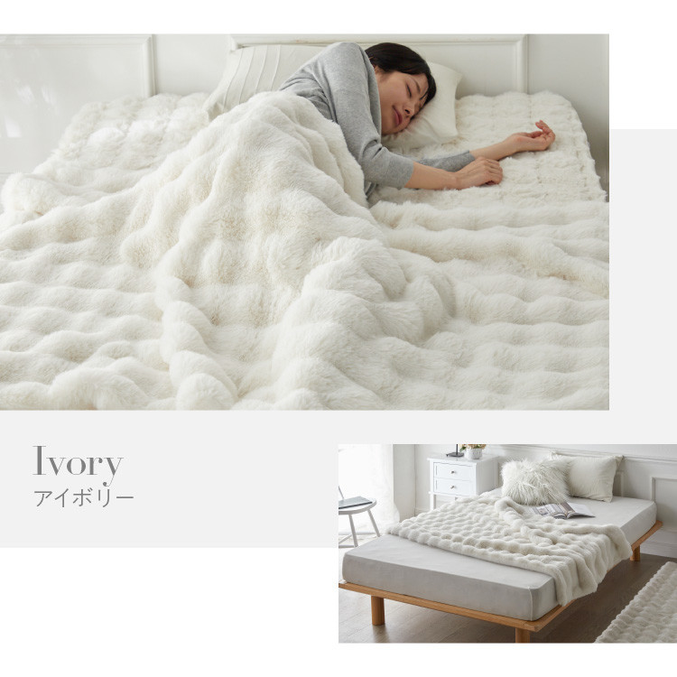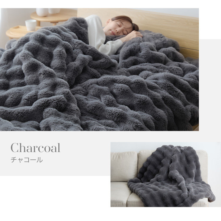 ロングパイルファー仕立てで、ずっと触れていたいタッチ感が癖になる2枚合わせの毛布です。