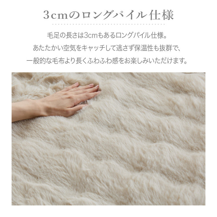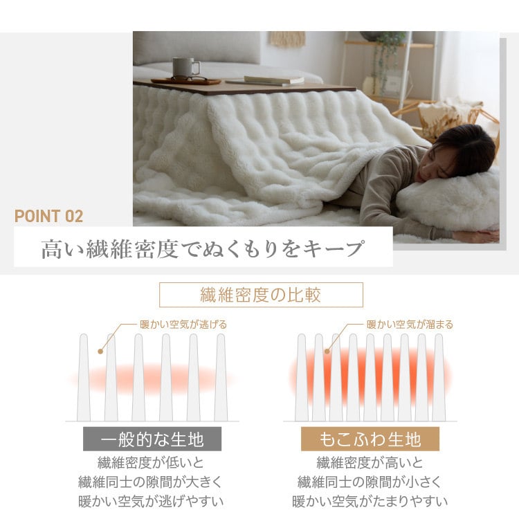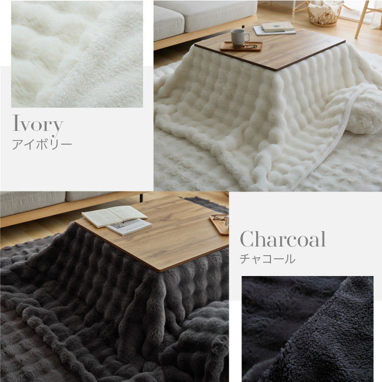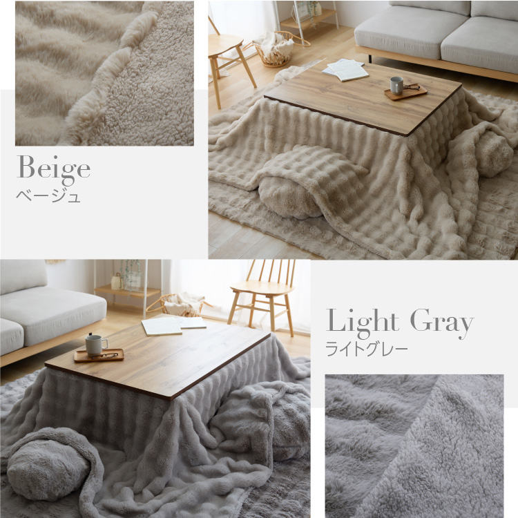 ロングパイルファー仕立てで、ずっと触れていたいタッチ感が癖になるこたつ布団です。