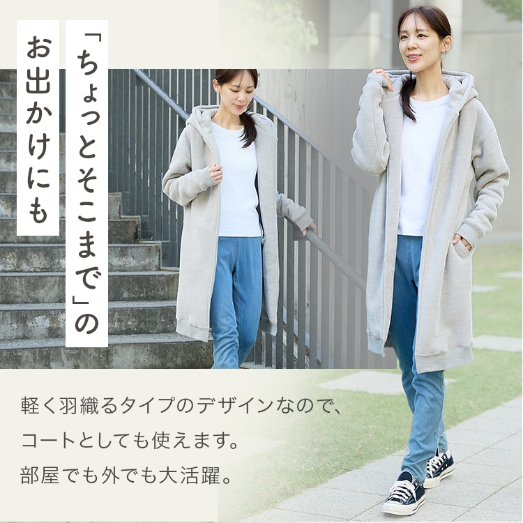 片面フランネルボアのコートにもなるお出かけ出来るルームウェアです。