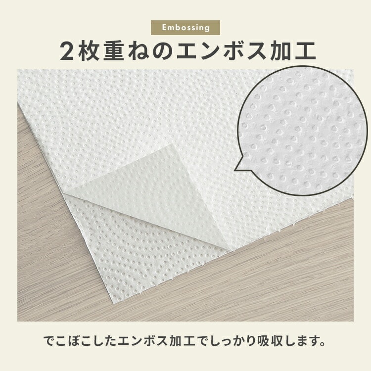 通常のキッチンペーパーの2パック分なので、取り替える手間が減ります。