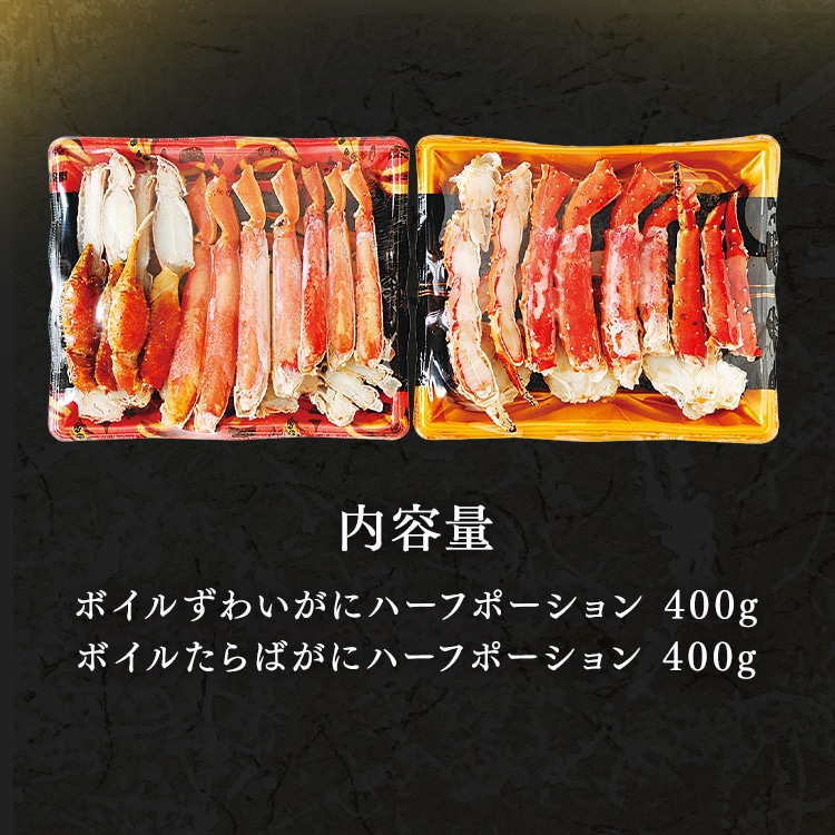 ボイルずわいがにハーフポーション400g、ボイルたらばがにハーフポーション400g