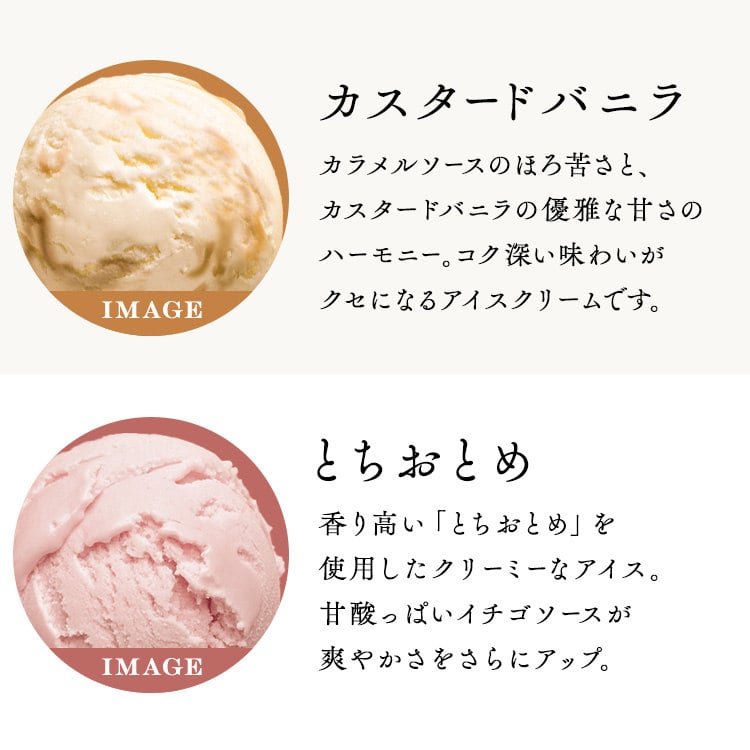 素材にこだわってつくり上げたプレミアムアイス。中に入っているフルーツソースとのコンビネーションが絶妙です。