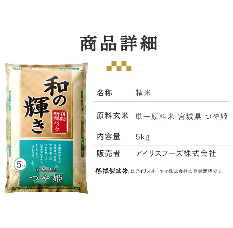 ![[5倍マイル!本日2/27迄][公式][5kg] 白米 和の輝き 宮城県産 つや姫 密封新鮮パック 脱酸素剤 低温製法米 アイリスオーヤマ](/img/0119/goods/L/7300006_00.jpg)