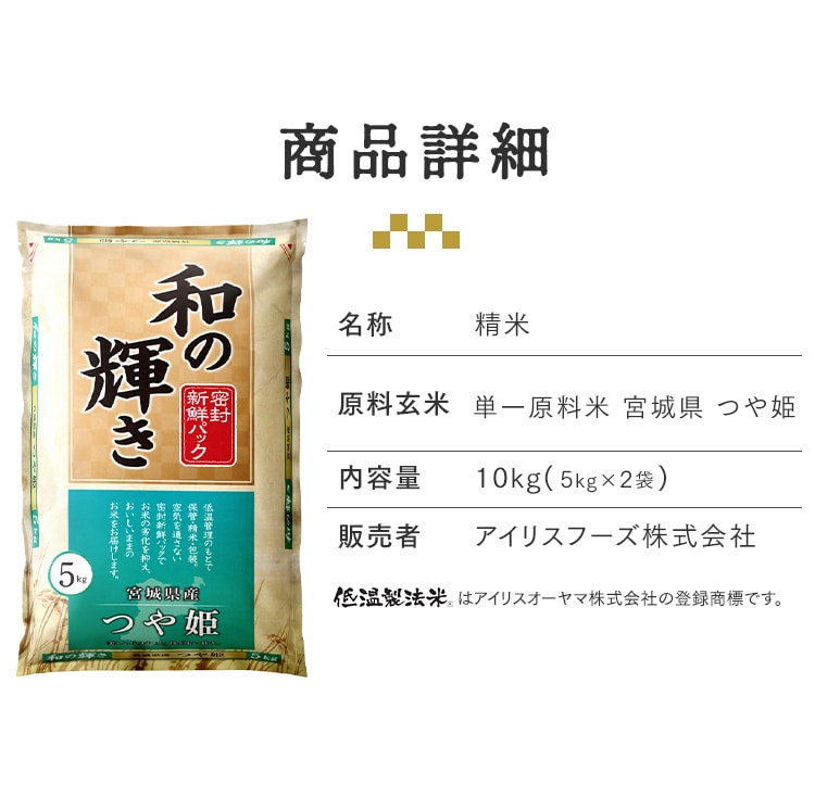 ![[5倍マイル!本日2/27迄][公式][10kg] 白米 和の輝き 宮城県産 つや姫 密封新鮮パック 脱酸素剤 低温製法米 アイリスオーヤマ](/img/0119/goods/L/7300011_00.jpg)