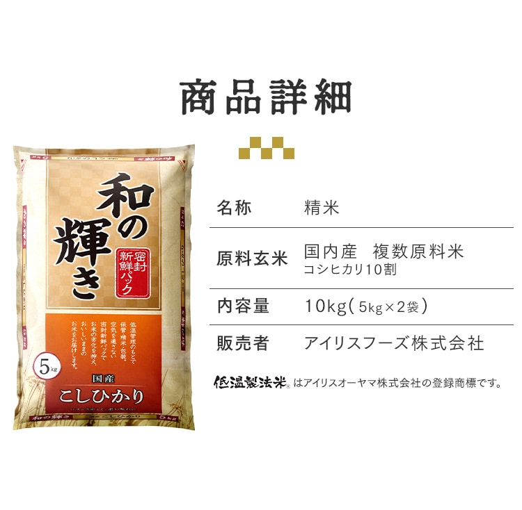 ![[5倍マイル!本日2/27迄][公式][10kg] 白米 和の輝き コシヒカリ 密封新鮮パック 脱酸素剤 低温製法米 アイリスオーヤマ](/img/0119/goods/D2/0119-7300013.jpg)