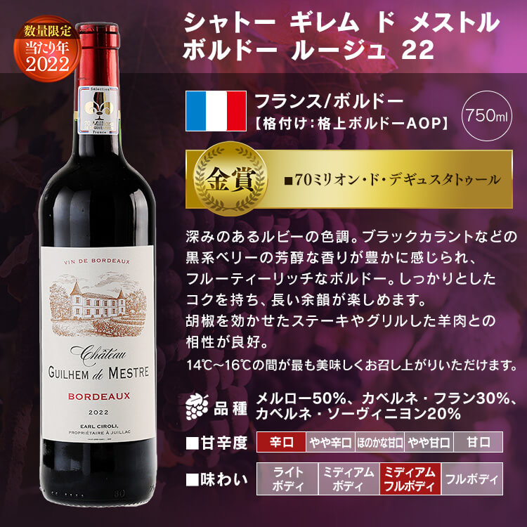 金賞ボルドーに加え、世界各国の銘醸ワインを一度に堪能!
