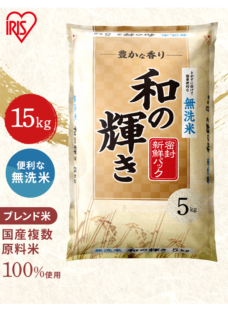 ![[公式][15㎏ (5㎏ × 3袋)][無洗米]使用 白米 和の輝き 国産ブレンド 密封新鮮パック 脱酸素剤 低温製法米 アイリスオーヤマ 15㎏/無洗米](/img/0119/goods/4/0119-7342093.jpg)