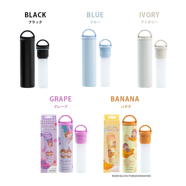 シリコンスティックに水を入れて冷凍庫で凍らせます。