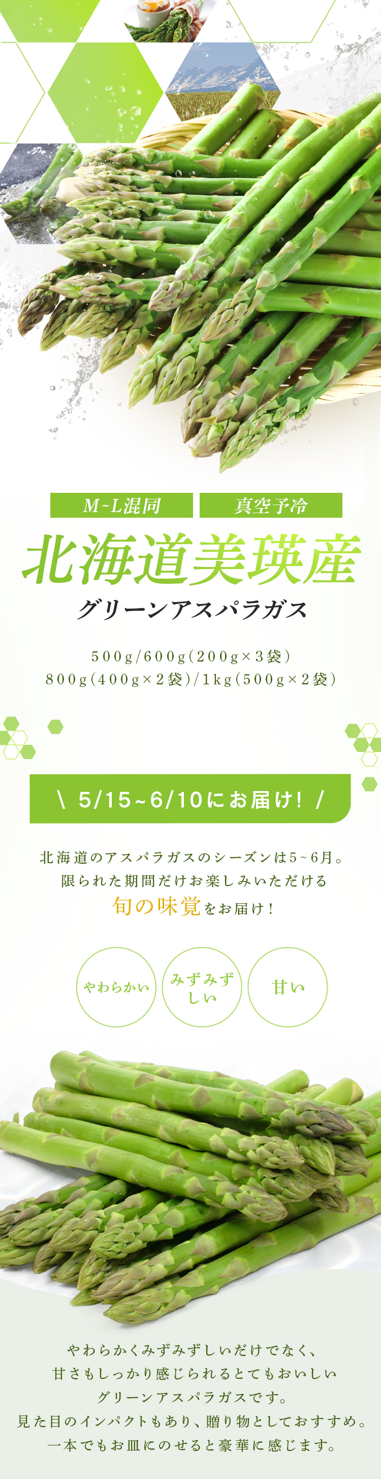 旬のアスパラガスを北海道から産地直送便でお届けします。
