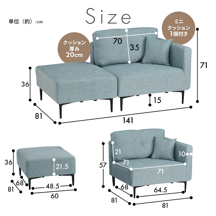 背もたれクッションとは別に、付属の小クッションがもう1個ついてくるお買い得なソファです。