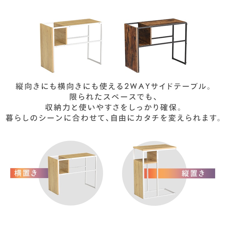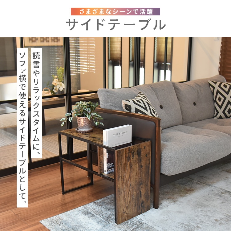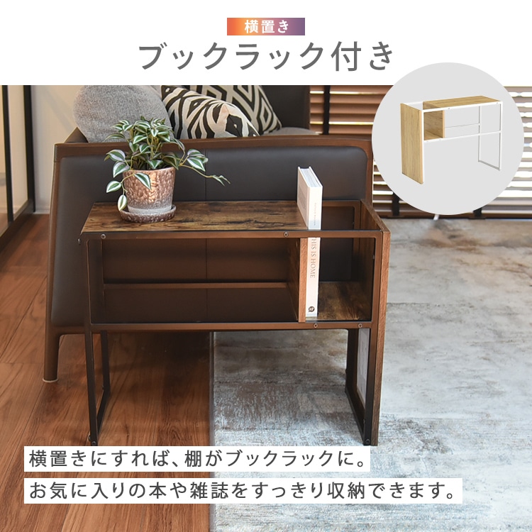 横置きにすればマガジンテーブルやセンターテーブルとして使用でき、縦置きにするとソファに差し込んで使うこともできます。
