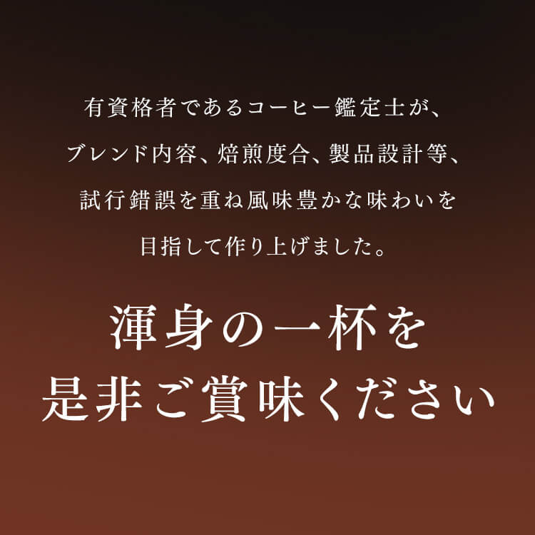しっかりとした苦味とコク深く、ボディ感のある味わい。香ばしさも感じ、余韻の長いコーヒー。