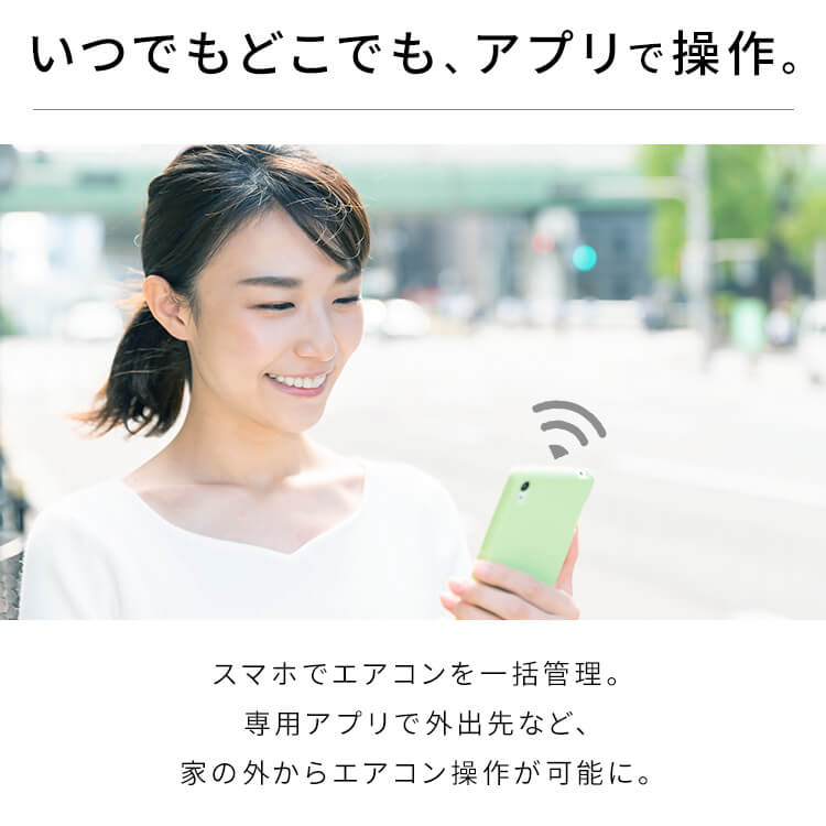 リモコンがなくても、声やアプリで家の外からでも操作できる。