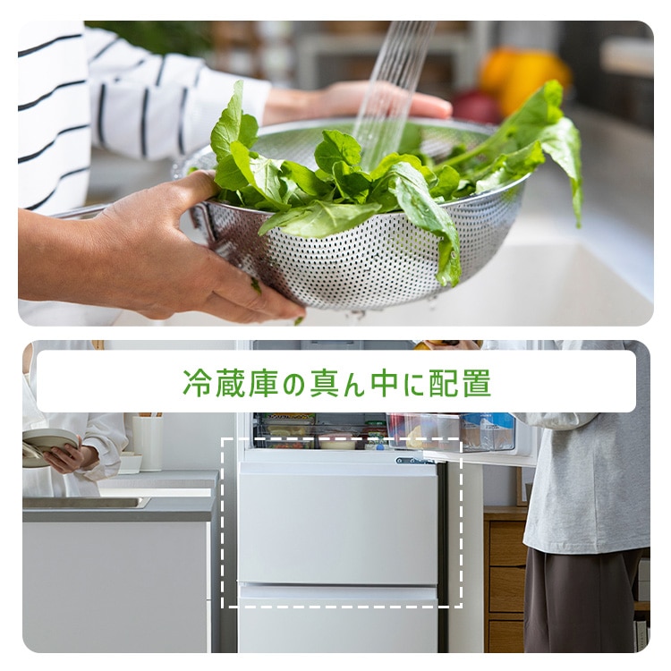 独立野菜室を搭載し、食材間の臭い移りが少なく野菜に適した環境で保存できます。