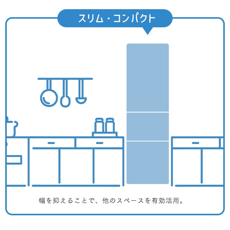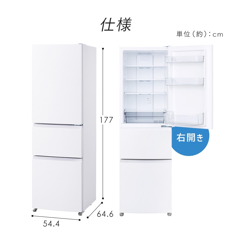 幅が約54cmと、300L帯の中ではスリムな冷蔵庫。