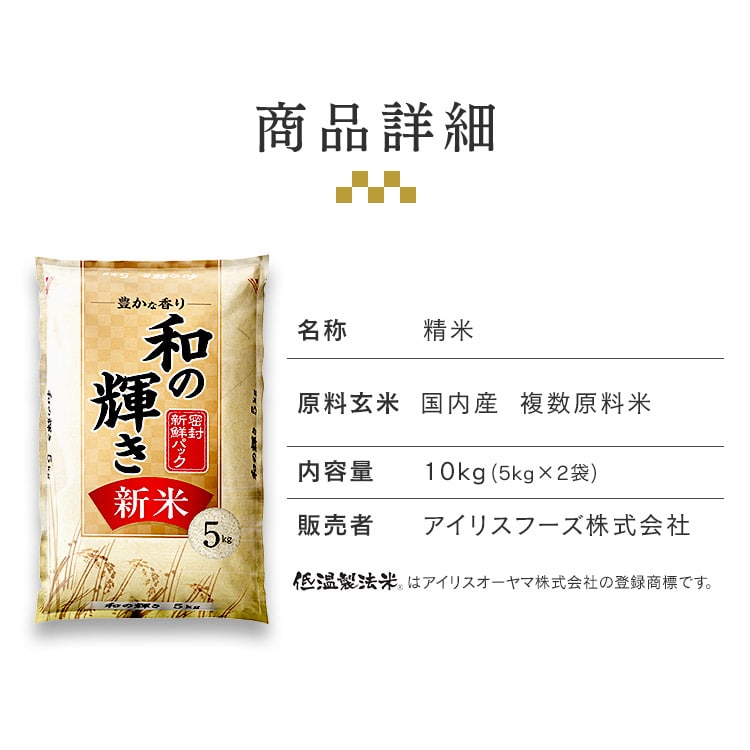 ![[マイル5倍!12/7迄][公式][10kg]新米 令和7年産 白米 和の輝き 国産ブレンド 密封新鮮パック 脱酸素剤 低温製法米 アイリスオーヤマ](/img/0119/goods/S/0119-1928032.jpg?2)
