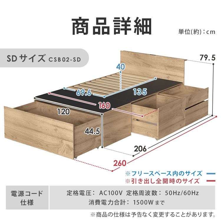 【設置込み】超収納ベッド宮有り セミダブル CSB02-SD ウォールナット
