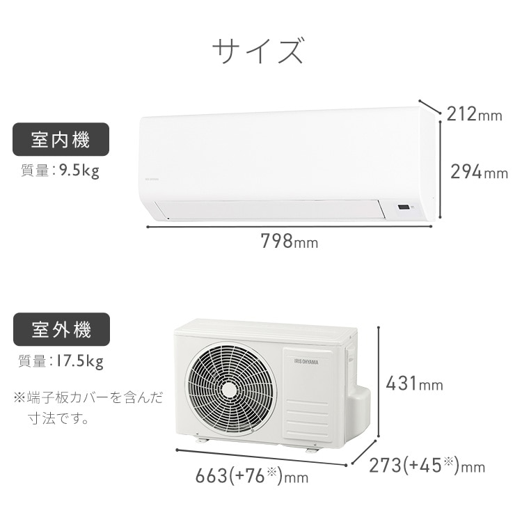 室内ユニット:幅79.8 × 奥行21.2 × 高さ29.4 cm