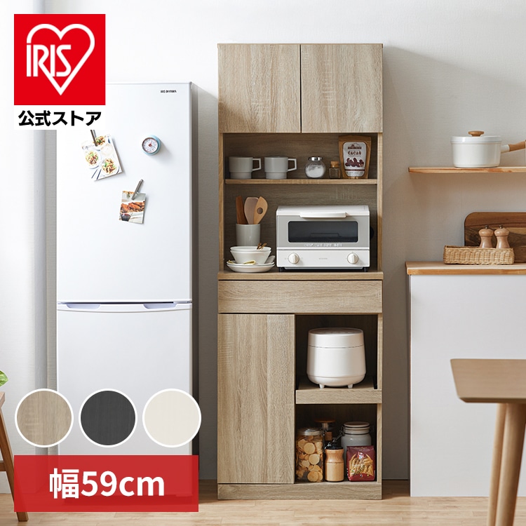 見せる収納と隠す収納、どんなお部屋にもなじむ木目調のデザインでワンランク上のキッチンへ。
