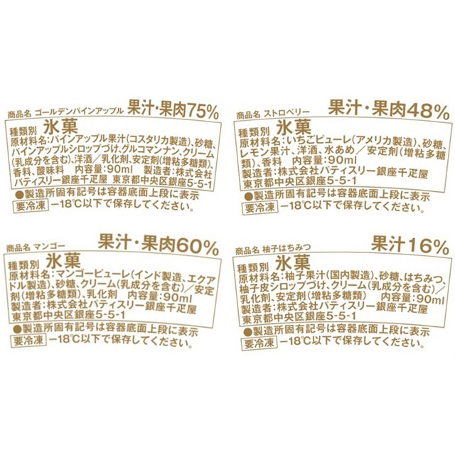 ゴールデンパイン,ストロベリー,マンゴー,柚子はちみつ 各1個