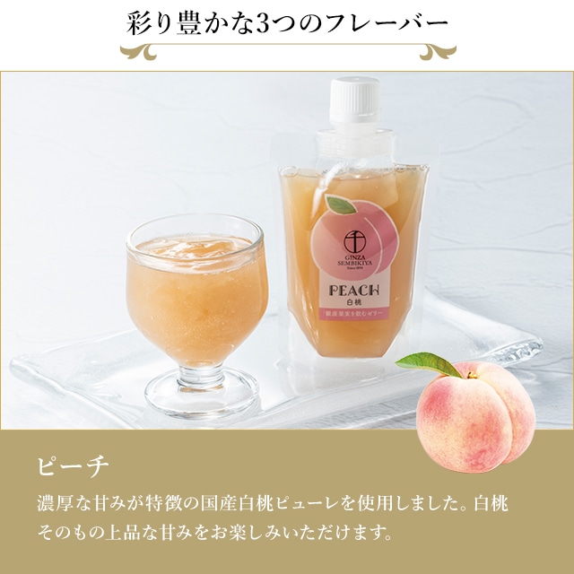 ・白桃:白桃ピューレ(国内製造)、砂糖/ゲル化剤(増粘多糖類)、酸味料、酸化防止剤(V.C)