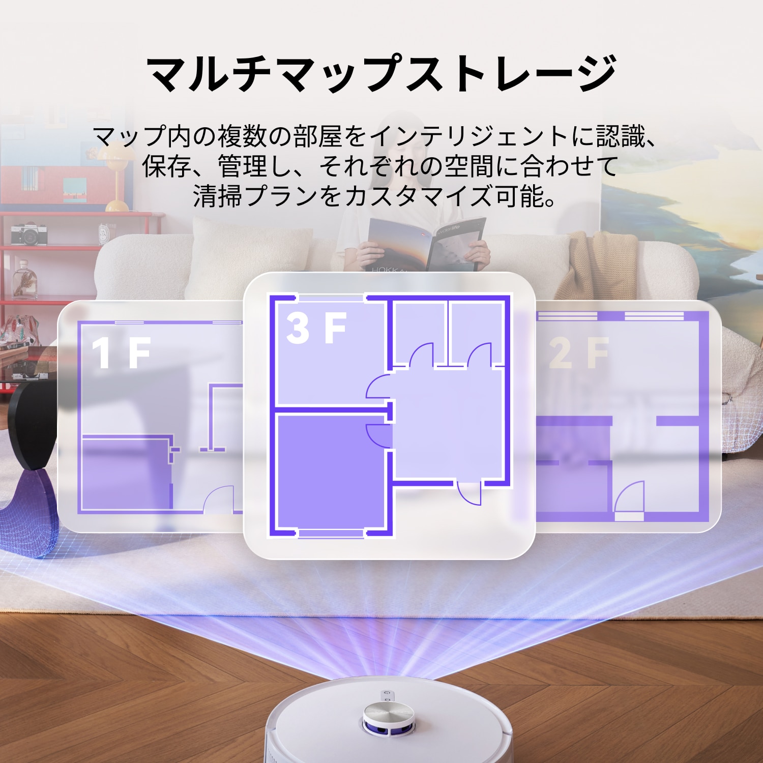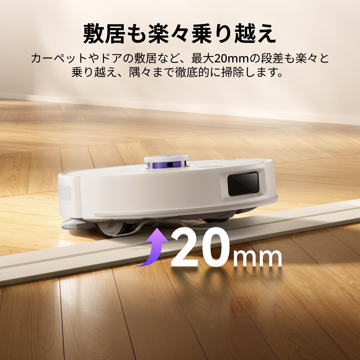Narwal Freo S お掃除ロボット 水拭き両用は、高精度LDSレーザーナビゲーションを搭載し、家中を360°スキャン。効率的な掃除経路を考え、正確にリアルタイムマップを生成します。複数階のマップを保存可能で、階層のあるご家庭にも最適です。3DストラクチャードライトとLiDARナビゲーションにより、家具や低い障害物を検知。さらに、20mmの障害物乗り越え機能で、敷居やラグの上もスムーズに移動します。