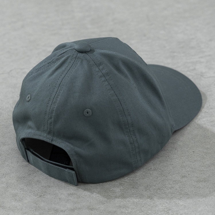 前面にオーバーサイズロゴを刺繍し、その縁にコントラストをつけてアクセントをプラスしています。背面にベルクロのアジャスター。
