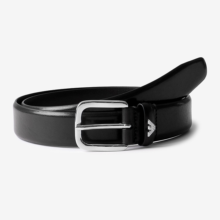 カウハイドを使用し、アイコニックな小さいイーグル形プレートをループにあしらったベルト。