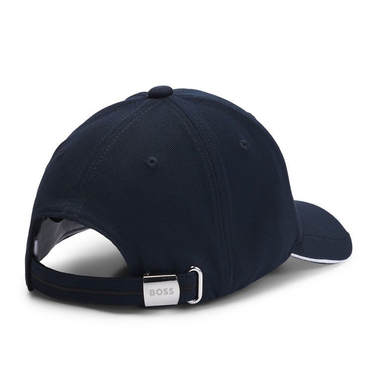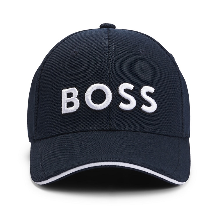 コントラストの効いた大きなロゴの刺繍が特徴でストレッチの効いたピケニット素材を使用しています。