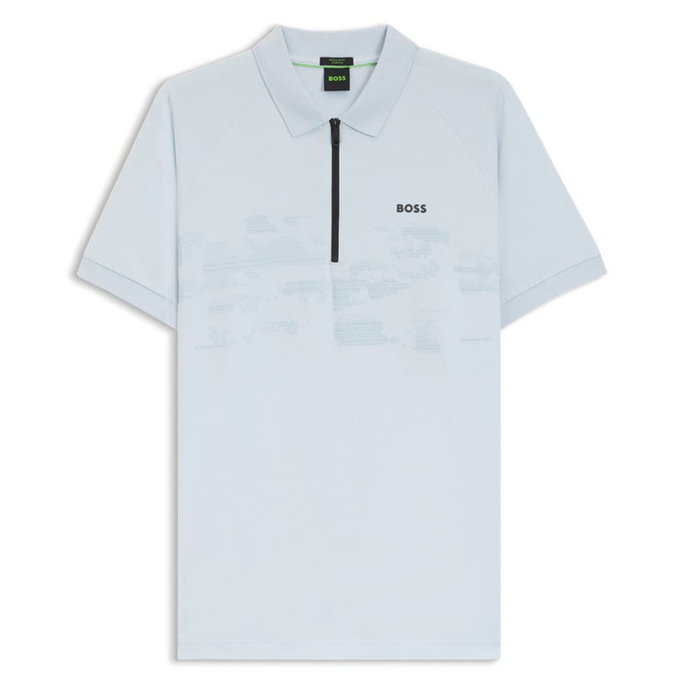 [BOSS]コットンブレンド ジップポロシャツ リフレクターグラフィック Open Blue L