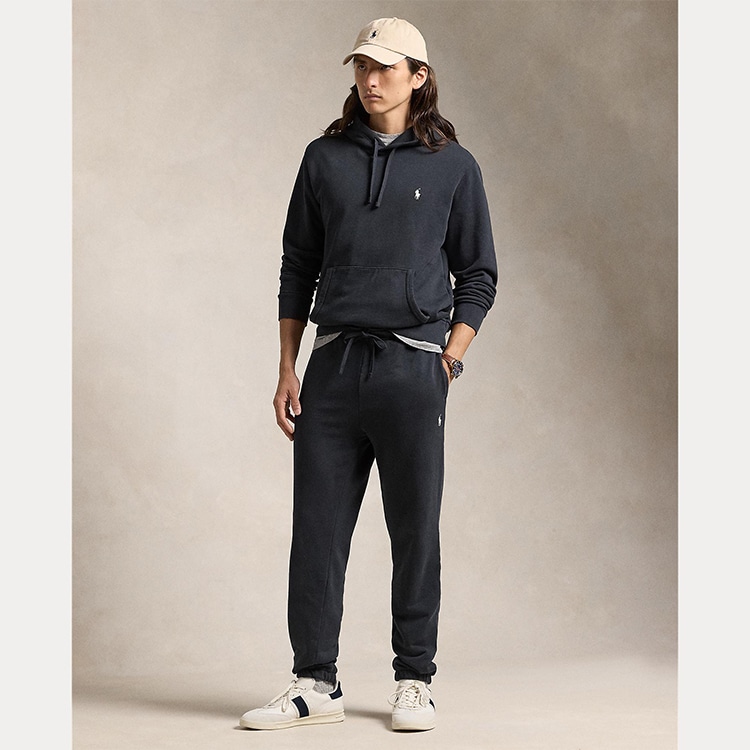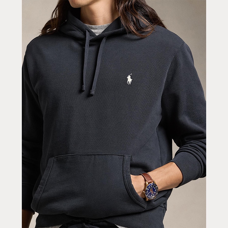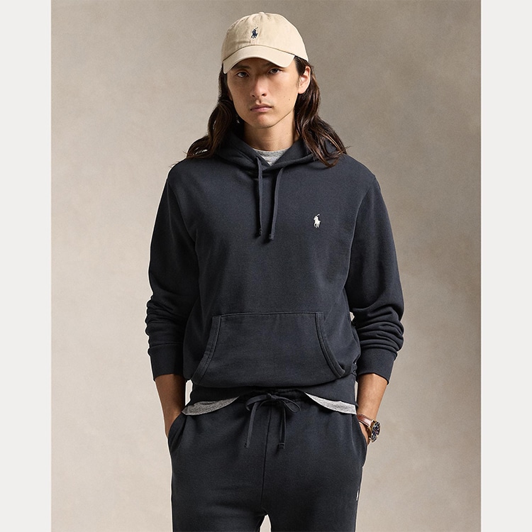 新しいループバック コットン テリーを使用した薄手のフーディ。着心地のよいPoloの定番アイテム。特別なヴィンテージ風のウォッシュ加工を施し、シグネチャーのポニー刺繍で仕上げたアイテム。