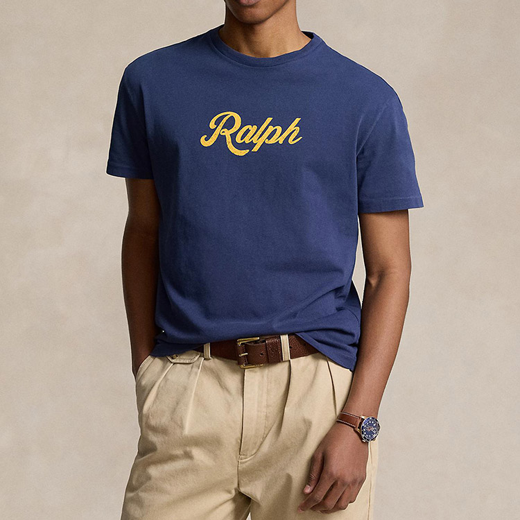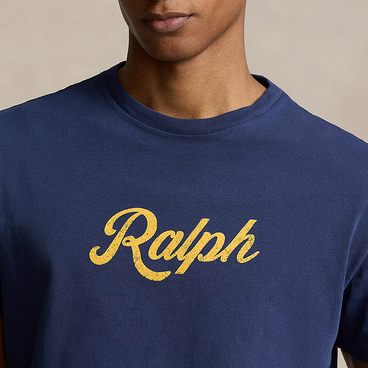 ・クラシックフィット:胸、ウエスト、袖にかけてゆったりとしたカット、肘上までかかる低いアームホール。・クルーネック / 半袖。・フロント中央にRalphの文字のプリント。
